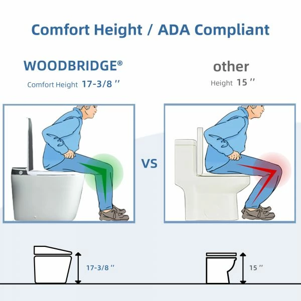 ✅ [CHAIR HEIGHT DESIGN]: 17-3/8’’ height from floor to bowl, this smart toilet with considerate height design not only meets the ADA standards but also perfect for people with poor knees or difficulty getting up/down, bringing comfort and health.