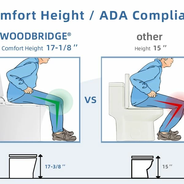 ✅ [ADA Compliant Toilet]: Features 17.3″ height from floor to seat. comfortable height seating, it makes visiting the toilet to be more comfort as there is less strain sitting on or standing up