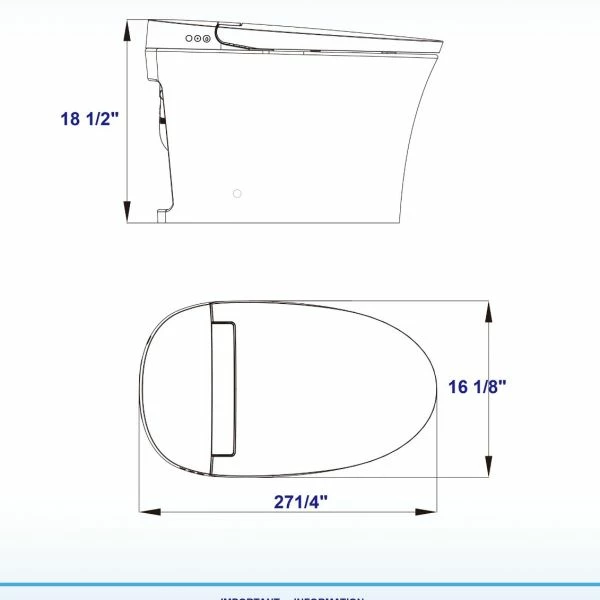 ✅ [SPECIFICATION AND DIMENSION: 1.28GPF, 12″ Rough In, Overall size (L) 27-1/4″ x (W) 16-1/8″ x (H) 18-1/2″, Bowl Height (less seat) : 15-3/8″, Bowl Height (with Seat): 17″