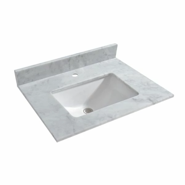 - ✔️ [Elegant & Stylish Top ]: Warmly elegant and stylish, Carrara marble vanity top complement most Bathroom designs and coordinate with both light and dark cabinetry. High-end and classic natural stone top Pre-sealed and Polished for added protection.