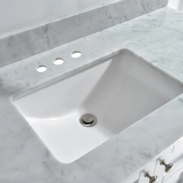 - ✔️[Easy to Installation]: Top pre-drilled for 4-inch widespread faucet, Assembled stylish rectangular white vitreous china undermount bowl with safety overflow hole, This top is perfect for quick and easy remodels. Obtain the beauty and durability of marble without hiring a professional