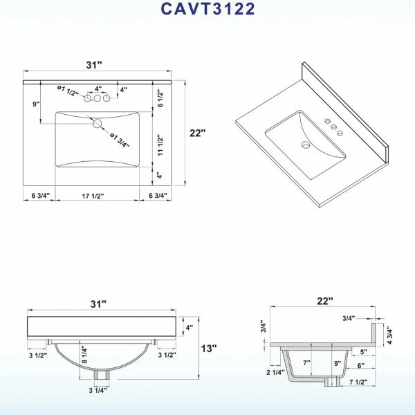 - ✔️[ DIMENSIONS ]: Exterior Dimension: 31″ wide x 22″ deep . Fits Most Standard 30-in W x 21-in D vanity cabinet , 4 inches center faucet holes