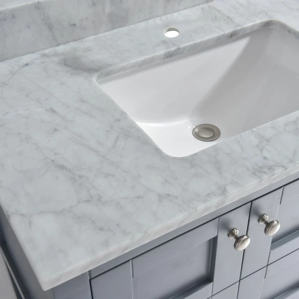 - ✔️ [Elegant & Stylish Top ]: Warmly elegant and stylish, Carrara marble vanity top complement most Bathroom designs and coordinate with both light and dark cabinetry. High-end and classic natural stone top Pre-sealed and Polished for added protection.