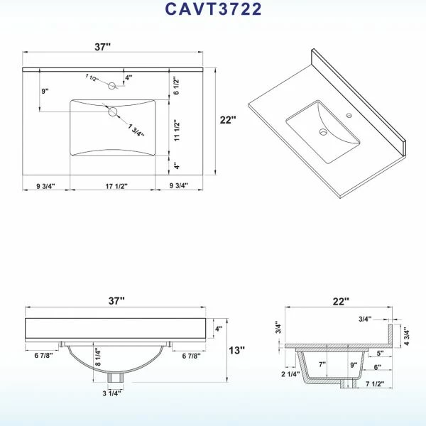 - ✔️ [ DIMENSIONS ]: Exterior Dimension: 37″ wide x 22″ deep . Fits Most Standard 36-in W x 21-in D vanity cabinet , Single center faucet holes