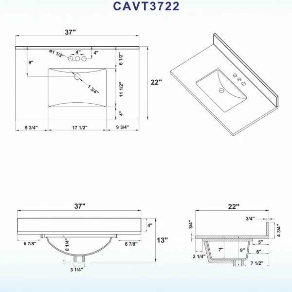 ✔️ [ DIMENSIONS ]: Exterior Dimension: 37″ wide x 22″ deep . Fits Most Standard 36-in W x 21-in D vanity cabinet , 4 inches center faucet holes.