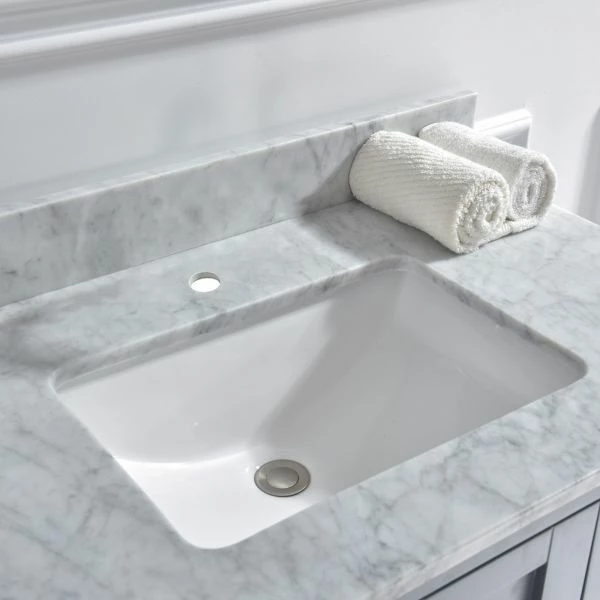 - ✔️ [Elegant & Stylish Top ]: Warmly elegant and stylish, Carrara marble vanity top complement most Bathroom designs and coordinate with both light and dark cabinetry. High-end and classic natural stone top Pre-sealed and Polished for added protection.
