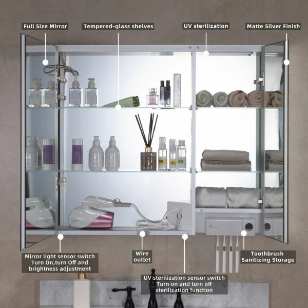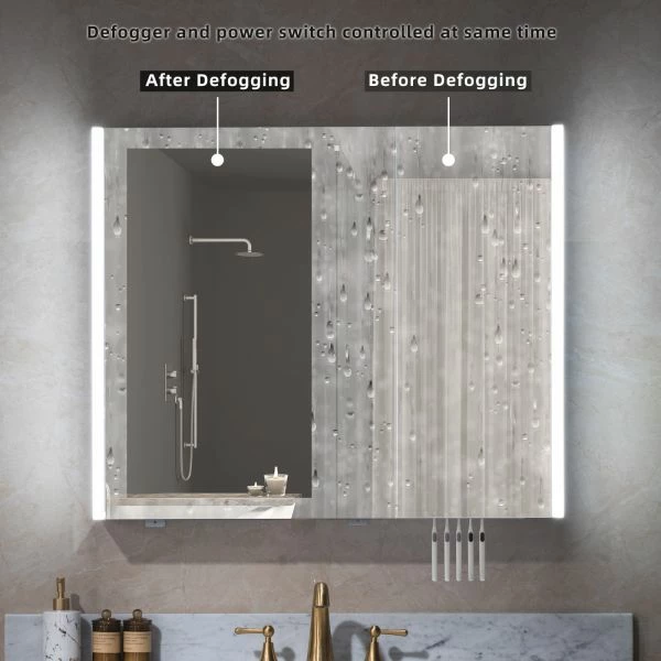 ✅ [FOGLESS MIRROR FOR BATHROOM]: Equipped with anti-fog heated pad in the back of the mirror and keeps your mirror clear while you shower, ensures a clear reflection during early morning steamy showers and save the time to clearing your mirror.