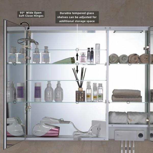✅ [SOFT CLOSING BLUM HINGES]: Blum 95 degree swing open and soft close, offering a silent shut to the door, protecting the mirror and your items.