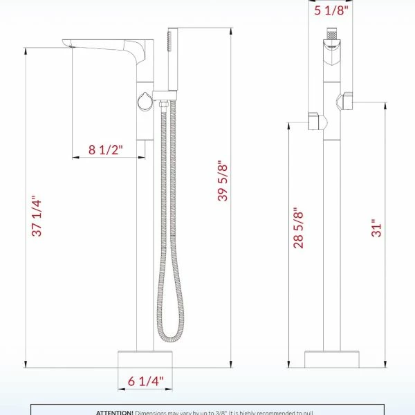 ✅ [ PACKAGE CONTENT]: Contain bathtub faucet (crafted from high quality brass), brass tube, hand shower with 60″ double spiral stainless steel hose, 32″ Hot and Cold water inlet hoses, metal tripod with mounting hardware, Base Cover and installation instruction.