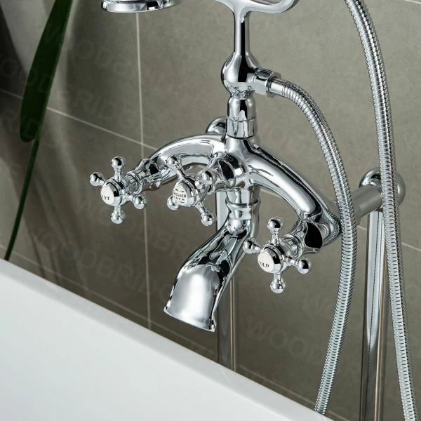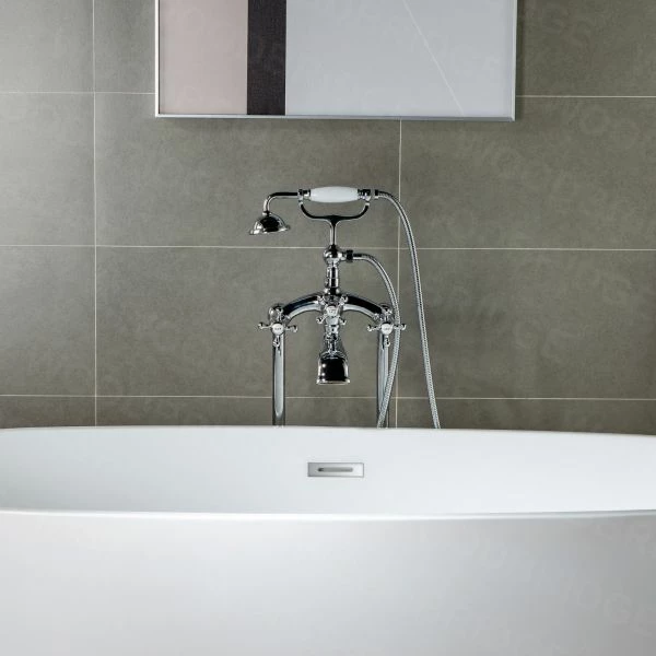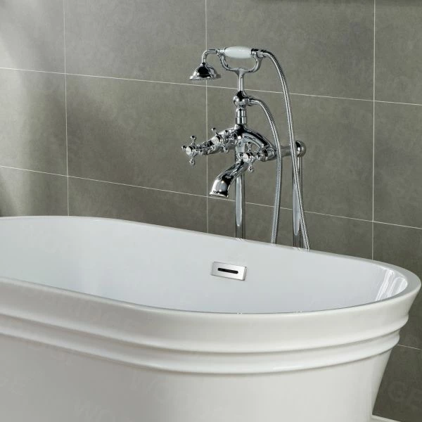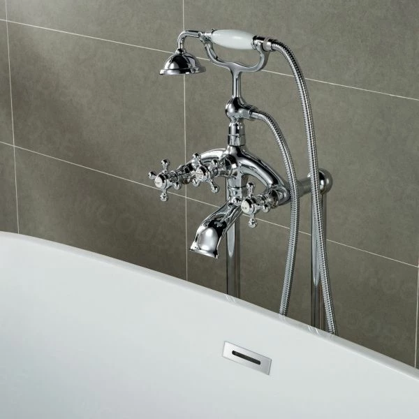 โ [ DESIGN INSPIRATION ]: Victorian style telephone hand shower with porcelain wand and classical 1/4 turn metal cross handles
