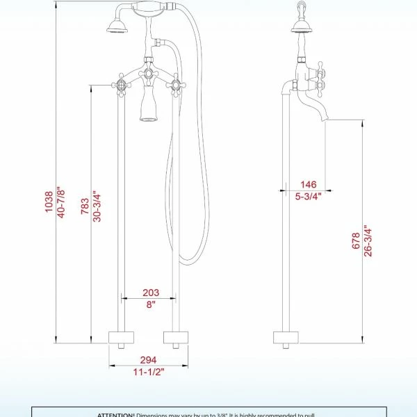 โ [ PACKAGE CONTENT]: Contain faucet body, 3 metal cross handle, hand shower with matching hose, base cover set, brass tube and installation manual.