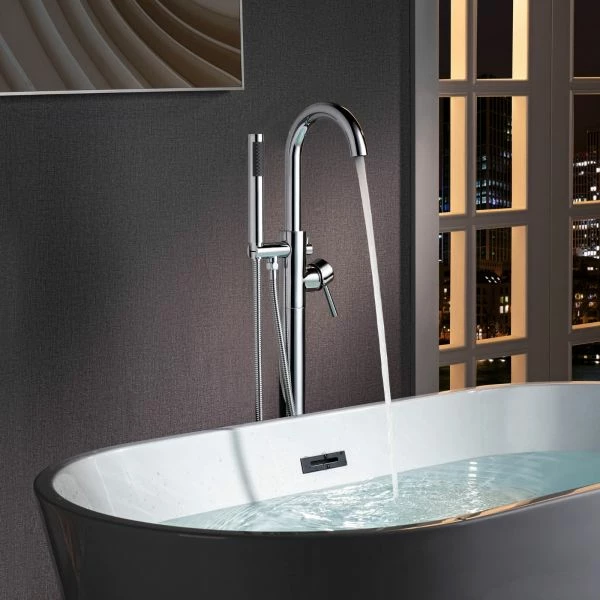 ✅ [ DESIGN INSPIRATION ]: Quick freestanding mount to floor design with high and rigid tripod mounting bracket and hardware included. Easy operation single handle design allows flow rate and temperature control in single hand. High Arch 360 degree rotation swivel spout offers more room for bathing activities.