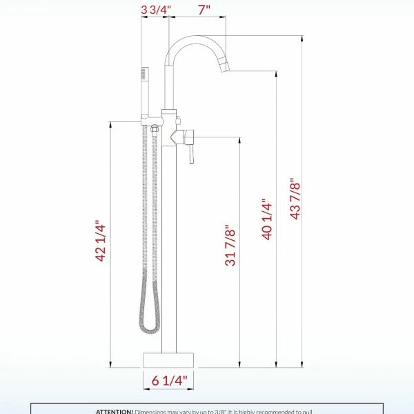✅ [ DIMENSIONS AND SPECIFICATIONS ]: Overall Size : (L) 6-1/4″ x (W) 6-1/4″ x (H) 43-7/8″. Spout Height: 43-7/8″, Spout Reach: 7″, Spout Clearance: 40-1/4″