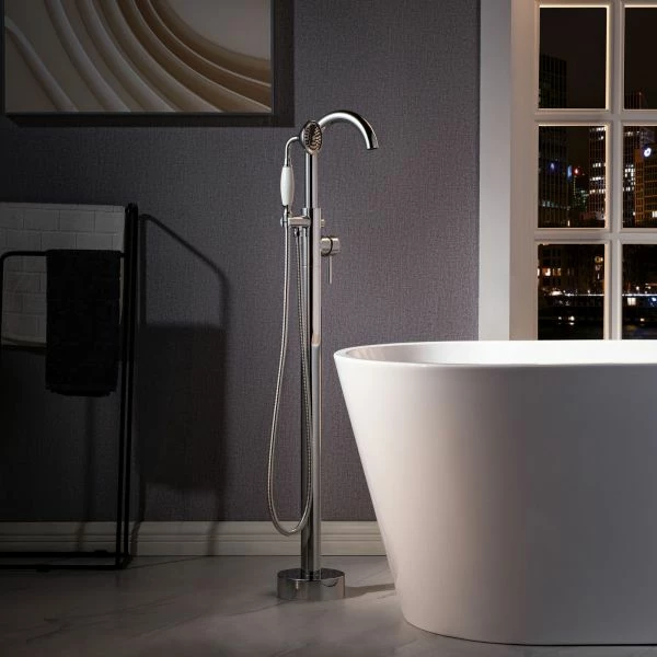 ✅ [ DESIGN INSPIRATION ]: Quick freestanding mount to floor design with high and rigid tripod mounting bracket and hardware included. Easy operation single handle design allows flow rate and temperature control in single hand. High Arch 360 degree rotation swivel spout offers more room for bathing activities.