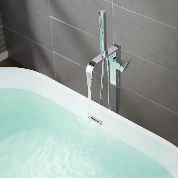 ✅ [DESIGN INSPIRATION]: Single-handle waterfall flow spout, quick freestanding mount to floor design with high and rigid tripod mounting bracket and hardware included, easy operation design allows flow rate and temperature control in single hand