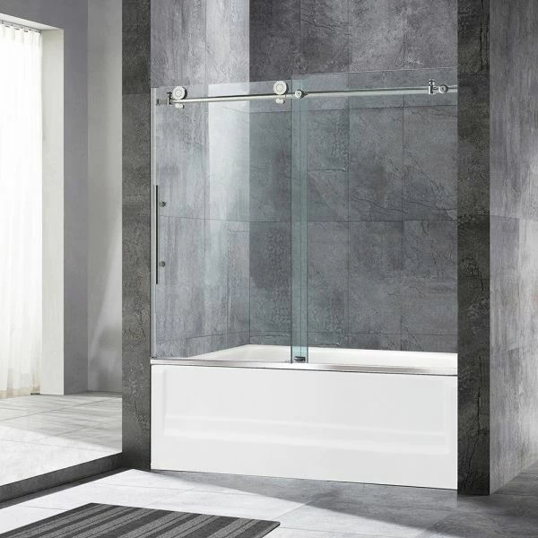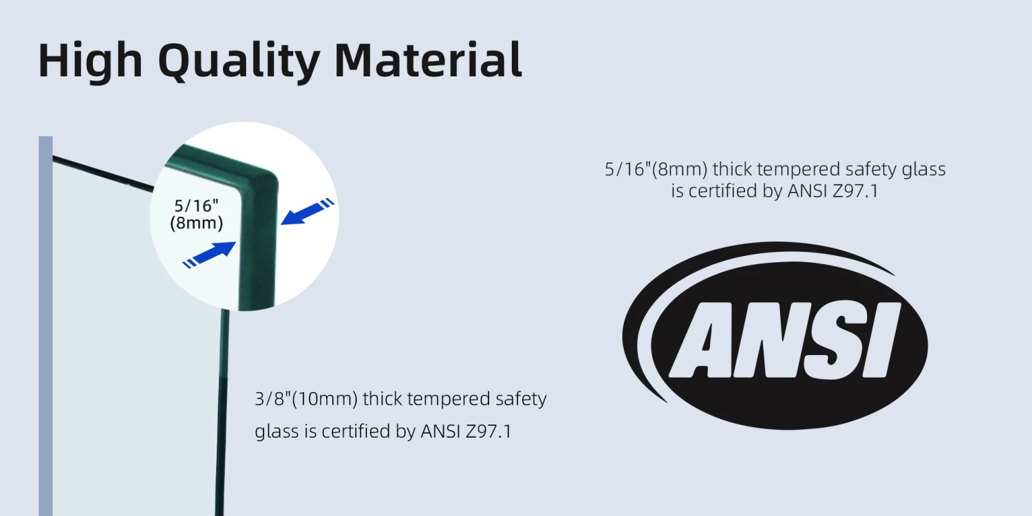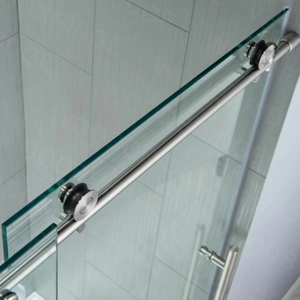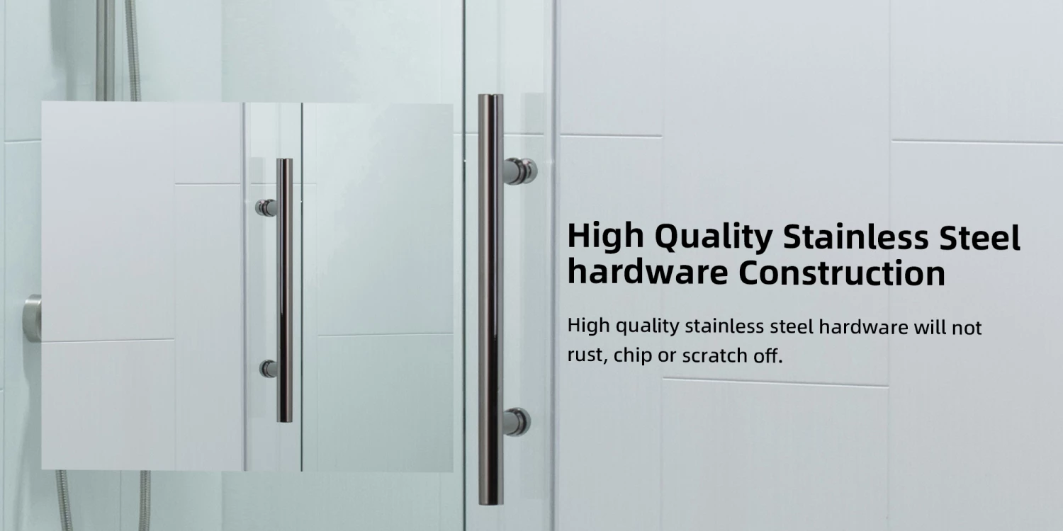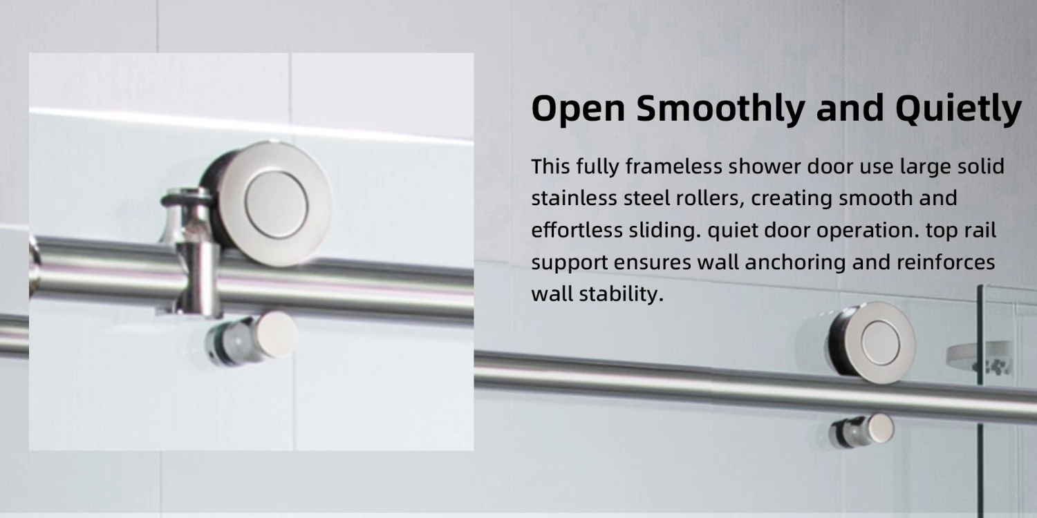 ✅ [HIGH QUALITY MATERIAL]: 3/8″(10mm) thick tempered safety glass with ANSI Z97.1 certified, for easy cleaning and to resist water spots; Large solid stainless steel rollers creating a quiet, smooth and effortless sliding
