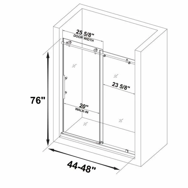 ✅ [DIMENSIONS AND FINISH]: 44-48″ inch Width adjustable x 76 inch Height, Door Width: 25-5/8 inch, Walk-in: 20 inch. Stainless Steel top guide bar can be trimmed up to 4 in. for width adjustment