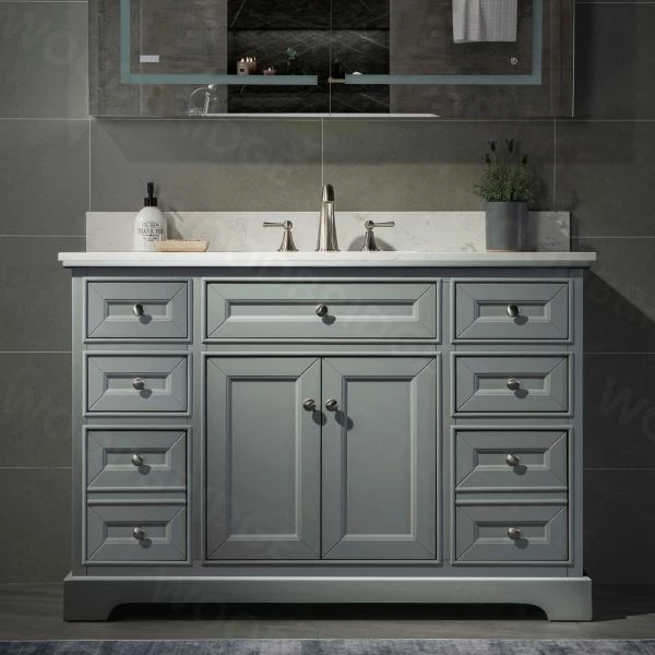 ✅ [DIMENSIONS]: Vanity dimensions: 48″ L x 21″ W x 33″ H; Engineered Stone Composite white carrara finish vanity top dimensions: 49″ L x 22″ W; Assembled dimensions with top and back splash: 49″ W x 22″ D x 38″ H