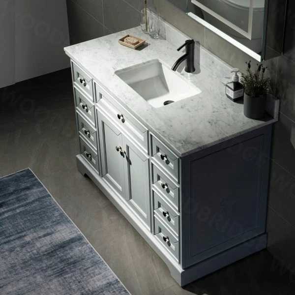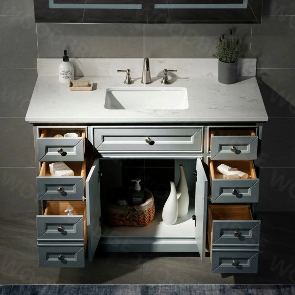 ✅ [NOTE]: Three drawers on each side and a decorative drawer on top of door; Variations in color hues and vein patterns are common in all stone effect vanity tops. Vanity Top, Faucet, Plumbing, silicone caulking and matching mirror are NOT included and are sold separately.