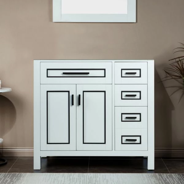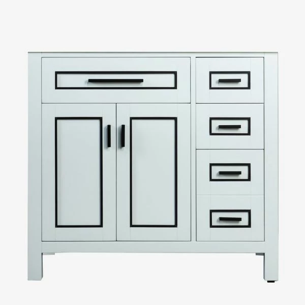 β [RELIABLE and PERFORMANCE]: Soft-closing hinges and slides on drawers and door ensures to open and close your cabinet in quiet without noise, preventing damage to the sides around it. Dovetail jointed drawers with undercount slide; Black door knobs a perfect match to contemporary bathroom decor. Inside and outside of the cabinet are painted with matching finish of high-quality low-odor paint in layers.