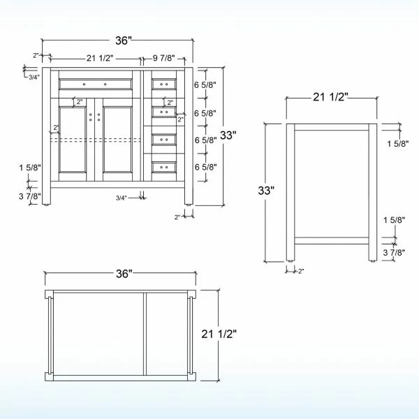 ✅ [DIMENSIONS]: Vanity dimensions: 36″ L x 21.5″ W x 33″ H; Engineered Stone Composite vanity top dimensions: 37″ L x 22″ W; Assembled dimensions with top and back splash: 37″ W x 22″ D x 38″ H