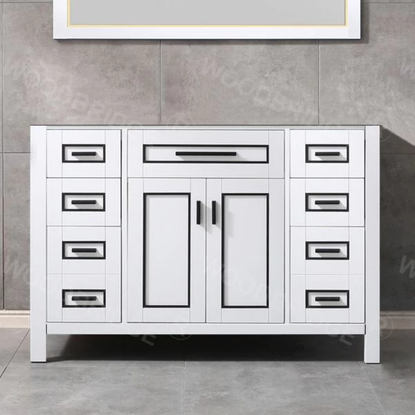 β [SPACIOUS STORAGE]: 3 drawers on each side of the vanity offers sufficient spaces for all your bathroom needs; The top drawer comes with 6 small cubes are great for storage for your valuable stuff and the bottom drawer is higher which is design for taller bath accessories. Open cabinet back for easy plumbing access; Safe time and a great choice for remodel project.