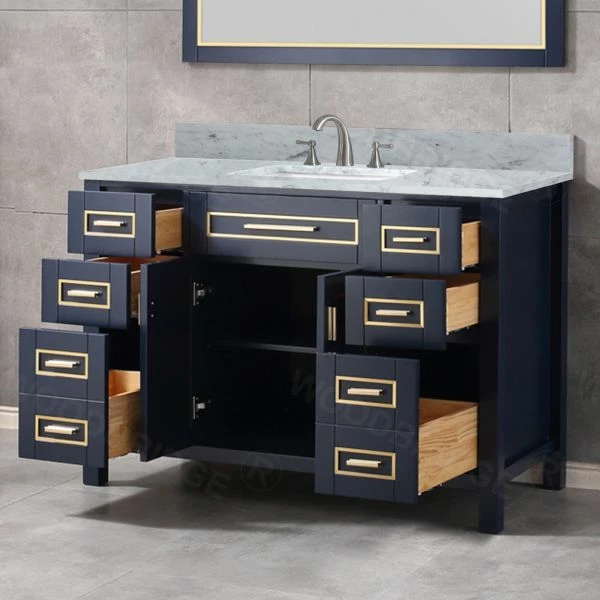 ✅ [RELIABLE and PERFORMANCE]: Soft-closing hinges and slides on drawers and door ensures to open and close your cabinet in quiet without noise, preventing damage to the sides around it. Dovetail jointed drawers with undercount slide; Gold door knobs a perfect match to contemporary bathroom decor. Inside and outside of the cabinet are painted with matching finish of high-quality low-odor paint in layers.