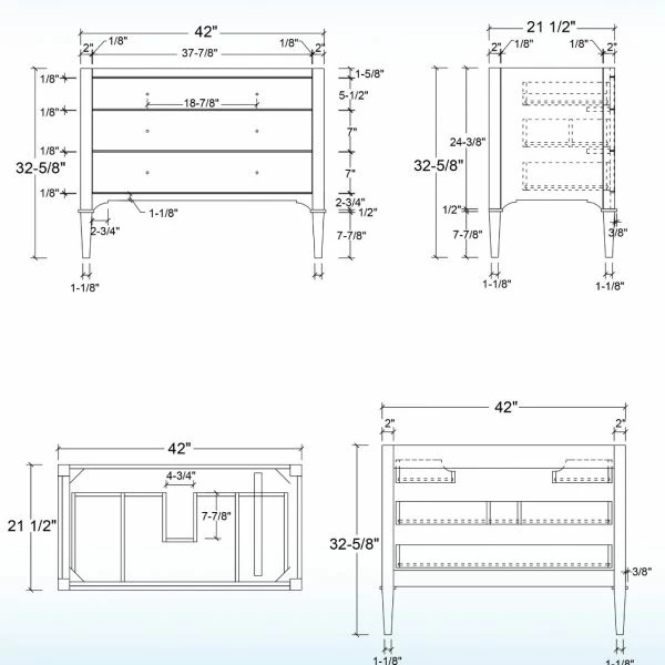 ✅ [DIMENSIONS]: Vanity dimensions: 42 in. L x 21.5 in. W x 33 in. H; Coordinates with 43 in. L x 22 in. W single center bowl vanity top.