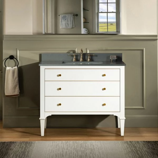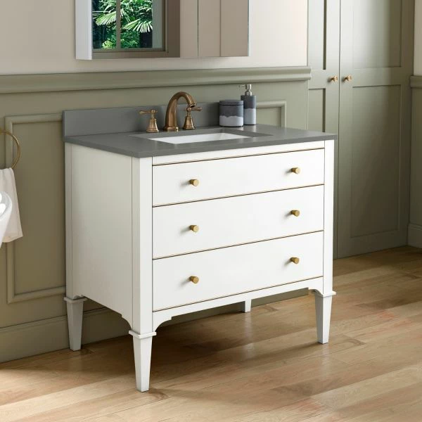 ✅ [RELIABLE and PERFORMANCE]: Soft-closing hinges and slides on drawer ensures to open and close your cabinet in quiet without noise, preventing damage to the sides around it. Dovetail jointed drawers with undercount slide; Brushed Gold door knobs a perfect match to contemporary bathroom decor. Inside and outside of the cabinet are painted with matching finish of high quality low-odor paint in layers. Comes with adjustable height levelers.
