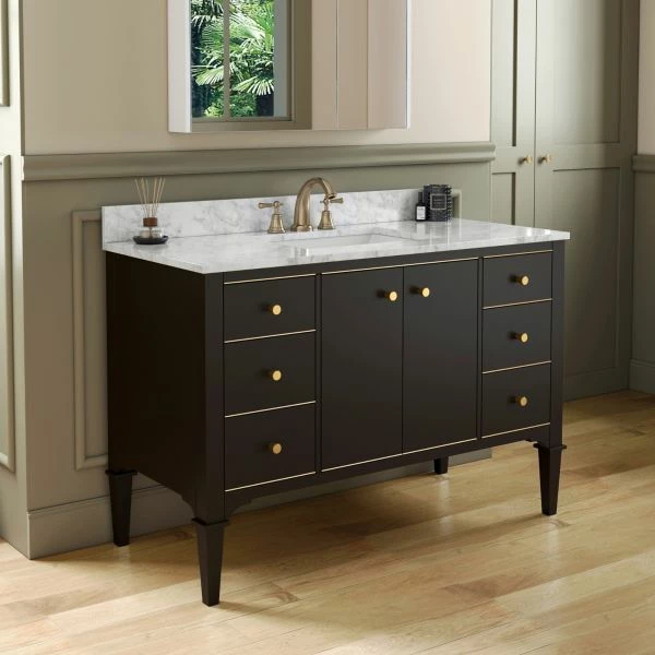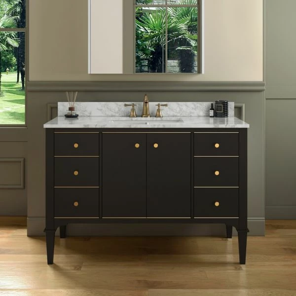 ✅ [DIMENSIONS]: Vanity dimensions: 48 in. L x 21.5 in. W x 33 in. H; Coordinates with 49 in. L x 22 in. W single center bowl vanity top.