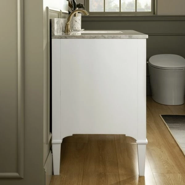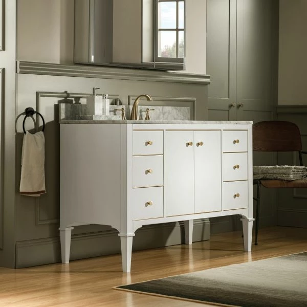 β [RELIABLE and PERFORMANCE]: Soft-closing hinges and slides on drawer ensures to open and close your cabinet in quiet without noise, preventing damage to the sides around it. Dovetail jointed drawers with undercount slide; Brushed Gold door knobs a perfect match to contemporary bathroom decor. Inside and outside of the cabinet are painted with matching finish of high quality low-odor paint in layers. Comes with adjustable height levelers.