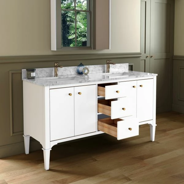 ✅ [DIMENSIONS]: Vanity dimensions: 60 in. L x 21.5 in. W x 33 in. H; Coordinates with 61 in. L x 22 in. W double bowl vanity top.