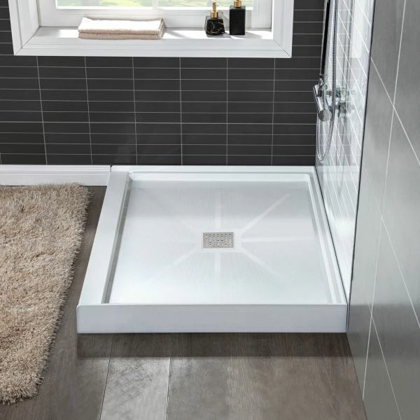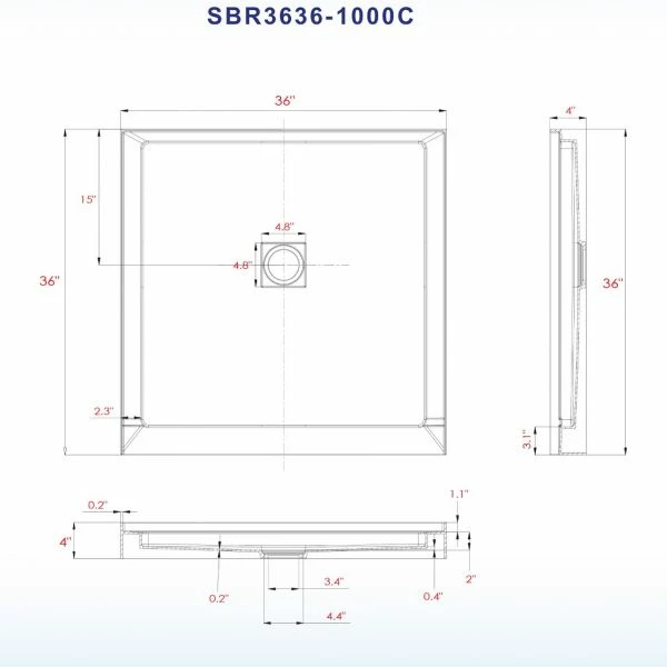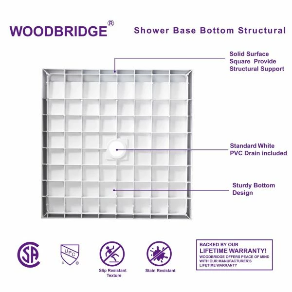 ✅️[DIMENSIONS]:WOODBRIDGE Solid Shower Base SBR3636-1000C 36″ L x 36″ W x 4″ H, Center Drain,Brushed Nickel Drain Cover.