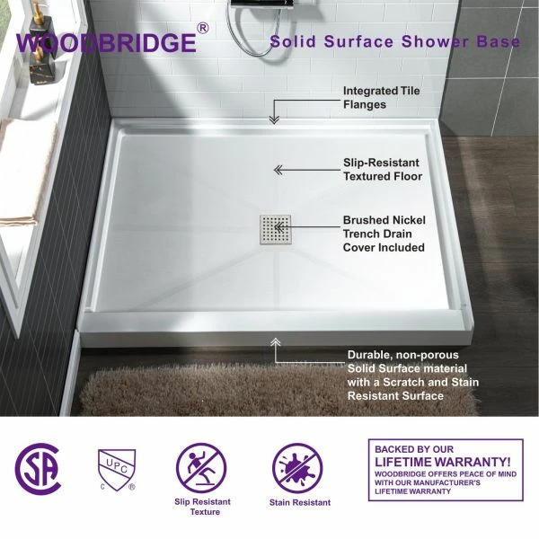 ✅️[SOLID SURFACE MATERIAL]: Made from a durable, non-porous Solid Surface material with a smooth surface, this product offers the same high-quality material throughout its thickness. and Will not mold or mildew, no grout to clean.