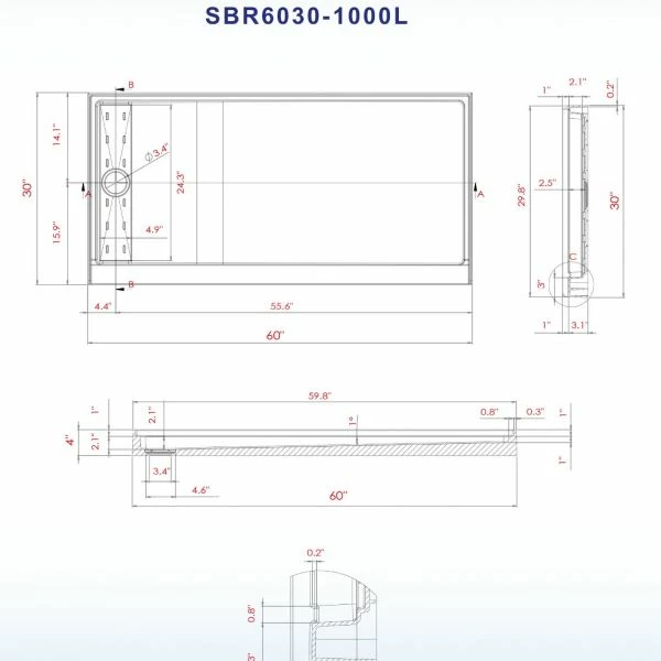 ✅️[DIMENSIONS]:WOODBRIDGE Solid Shower Base SBR6030-1000L 60″ L x 30″ W x 4″ H, Left Drain