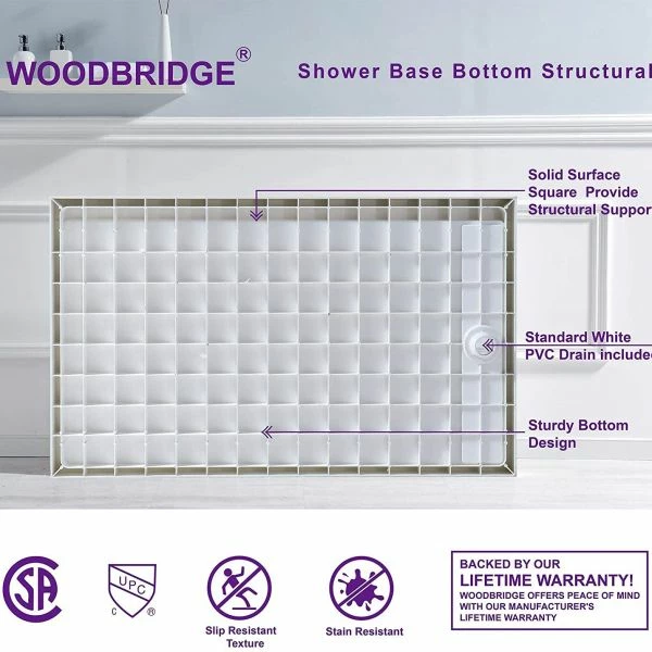 ✅️[DIMENSIONS]:WOODBRIDGE Solid Shower Base SBR6032-1000R 60″ L x 32″ W x 4″ H, Right Drain