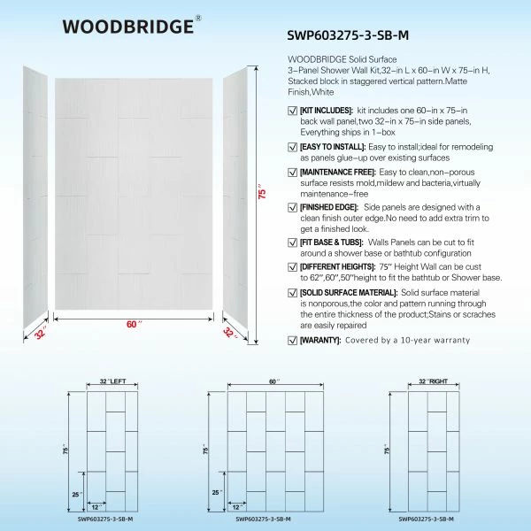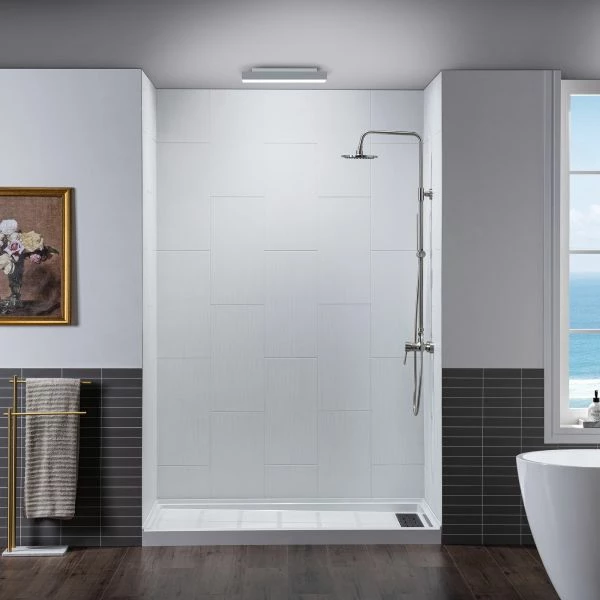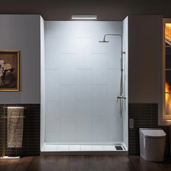 ✅ [KIT INCLUDES]: Kit includes a piece of 60-in. x 75-in. back wall panel and two pieces of 32-in. x 75-in. side panels, All ship in a rigid box