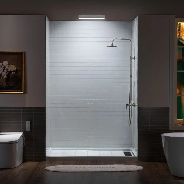 ✅ [KIT INCLUDES]: Kit includes a piece of 60-in. x 75-in. back wall panel and two pieces of 32-in. x 75-in. side panels, All ship in a rigid box