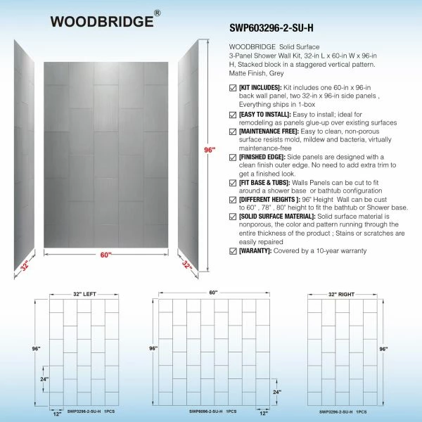 ✅ [MAINTENANCE FREE]: The non-reflective matte finish provides a “dry”understated look. Non-porous solid surface shower wall panels provide a sleek, streamlined look that makes maintenance a breeze, with no unsightly grout lines in which mold and mildew can hide