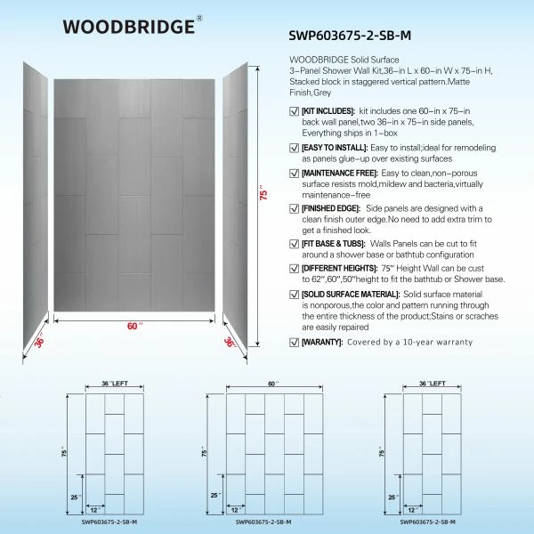 ✅ [MAINTENANCE FREE]: The non-reflective matte finish provides a “dry”understated look. Non-porous solid surface shower wall panels provide a sleek, streamlined look that makes maintenance a breeze, with no unsightly grout lines in which mold and mildew can hide