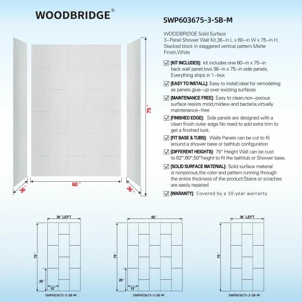 ✅ [KIT INCLUDES]: Kit includes a piece of 60 -in x 75 -in back wall panel and two pieces of 36-in x 75-in side panels , All ship in a rigid box