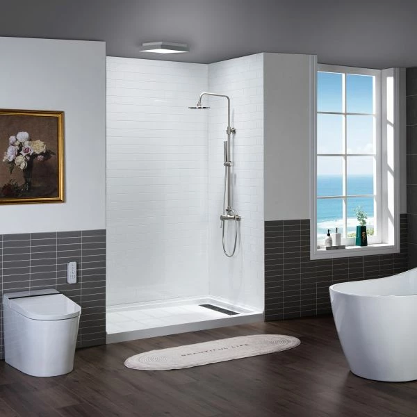 ✅ [MAINTENANCE FREE]: High gloss white provide a smooth, shiny and reflective look and is easy to clean; Non-porous solid surface shower wall panels provide a sleek, streamlined look that makes maintenance a breeze, with no unsightly grout lines in which mold and mildew can hide