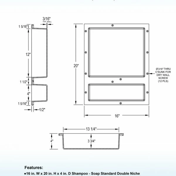 EASY INSTALLATION: Flush Mount with Cement Board Installation. Niche shower that is fully sealed, hassle-free, quick and simple installation. It can be install vertically or horizontally to suit your needs and design.