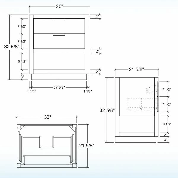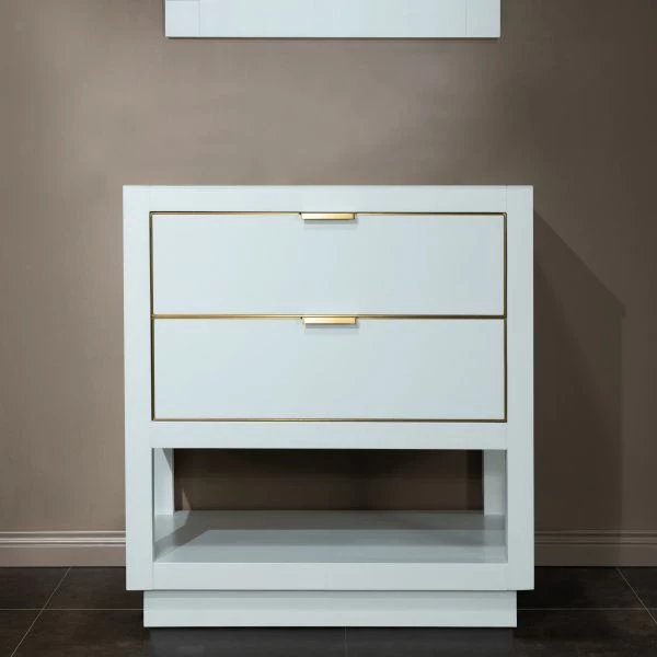 WOODBRIDGE Venice 30″x21″x33″ Solid Wood Bath Vanities Cabinet Only With Center Drawers In White And Gold Hardware, Venice-3021-White-G