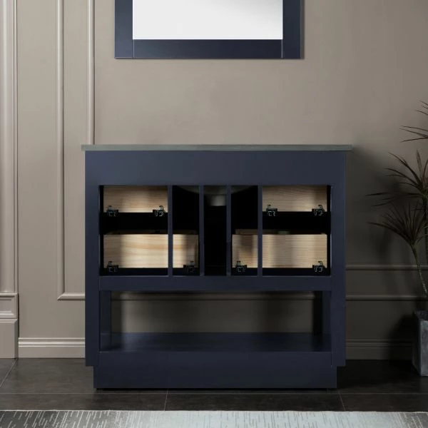 โ [DIMENSIONS]: Vanity dimensions: 36″ L x 21.5″ W x 33″ H; Engineered Stone Composite vanity top dimensions: 37″ L x 22″ W; Assembled dimensions with top and back splash: 37″ W x 22″ D x 38″ H