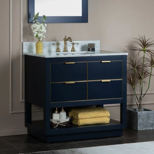 ✅ [DIMENSIONS]: Vanity dimensions: 36″ L x 21.5″ W x 33″ H; Carrara white marble vanity top dimensions: 37″ L x 22″ W; Assembled dimensions with top and back splash: 37″ W x 22″ D x 38″ H
