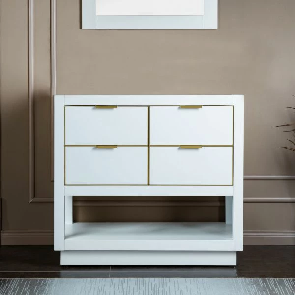 WOODBRIDGE Venice 42″x21″x33″ Solid Wood Bath Vanities Cabinet Only With Drawers In White And Gold Hardware, Venice-4221-White-G