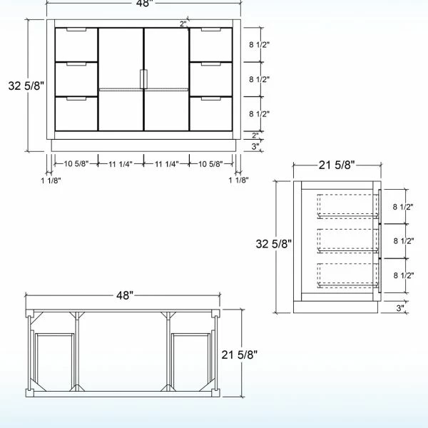 β [DIMENSIONS]: Vanity dimensions: 48 in. L x 21.5 in. W x 33 in. H; Coordinates with 49 in. L x 22 in. W single bowl vanity top.(Vanity top is not included)