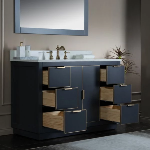 ✅ [RELIABLE and PERFORMANCE]: Soft-closing hinges and slides on drawer ensures to open and close your cabinet in quiet without noise, preventing damage to the sides around it. Dovetail jointed drawers with undercount slide; Gold door knobs a perfect match to contemporary bathroom decor. Inside and outside of the cabinet are painted with matching finish of high quality low-odor paint in layers.