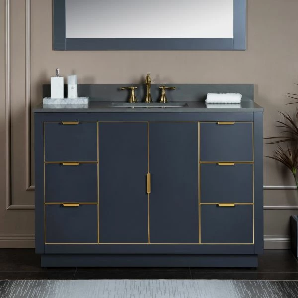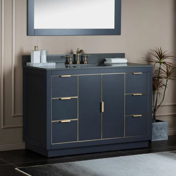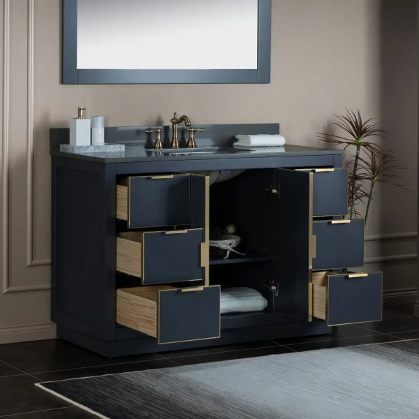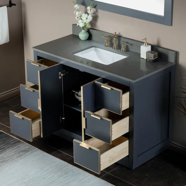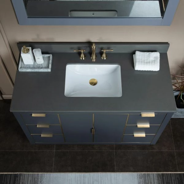 โ [DIMENSIONS]: Vanity dimensions: 48″ L x 21.5″ W x 33″ H; Engineered Stone Composite vanity top dimensions: 49″ L x 22″ W; Assembled dimensions with top and back splash: 49″ W x 22″ D x 38″ H